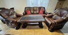 Sprzedam zestaw wypoczynkowy - skóra naturalna: kanapa z funkcją spania, dwa fotele i ława.