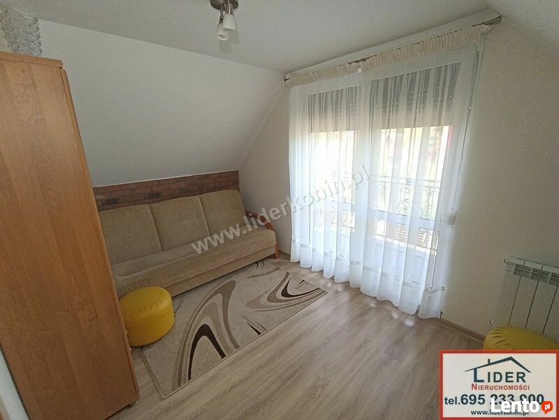 Sprzedam atrakcyjny dom w zabudowie wolnostojącej zlokalizowany w miejscowości Niedźwiady Małe, (gm. Ślesin) około 200m od brzegu Jeziora Licheńskiego. Dom o powierzchni 87m2, usytuowany na w pełni zagospodarowanej i ogrodzonej działce o powierzchni 6,31a. Wyszczególnienie pomieszczeń: parter - salon z aneksem kuchennym i wyjściem na taras, sypialnia, łazienka z WC, wiatrołap, kotłownia (piec na eko – groszek lub pellet); poddasze - dwie sypialnie (każda z wyjściem na balkon), pomieszczenie gospodarcze. Dom gotowy do zamieszkania, charakteryzujący się wysokim standardem wykończenia wnętrz, jak również funkcjonalnością i przestronnością pomieszczeń. Dodatkowo na działce usytuowany garaż dwustanowiskowy oraz pomieszczenie gospodarcze. Działka w pełni ogrodzona i zagospodarowana z licznymi nasadzeniami ozdobnymi, wszelkie podjazdy i chodniki wyłożone kostką brukową, brama automatyczna, Media: woda, en. elektryczna, szambo ekologiczne, światłowód. Atrakcyjna lokalizacja – na szczególna uwagę zasługuje fakt, iż dom zlokalizowany jest w idealnym miejscu dla osób chcących zamieszkać z dala od zgiełku miasta, a zarazem z doskonałym połączeniem komunikacyjnym. Bliskość wielu terenów rekreacyjnych, lasy, jeziora, powoduje, że lokalizacja domu to wymarzone miejsce dla ludzi aktywnych jak i szukających spokoju i ciszy. Cena 619 tys. zł do negocjacji. Szczegóły oferty pod nr 695 - pokaż numer telefonu - . Serdecznie zapraszamOferujemy bezpłatną pomoc w uzyskaniu kredytu na zakup nieruchomości – zadzwoń pod numer tel. 695 - pokaż numer telefonu - .